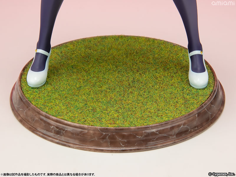 レースの舞台を彷彿とさせる芝生を表現した台座は、キングヘイローの力強さと優雅さを一層引き立て、躍動感あふれる演出を加えています。