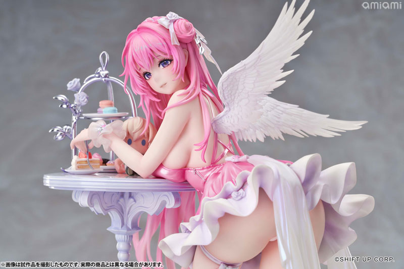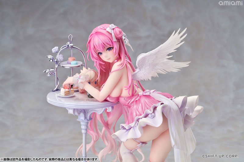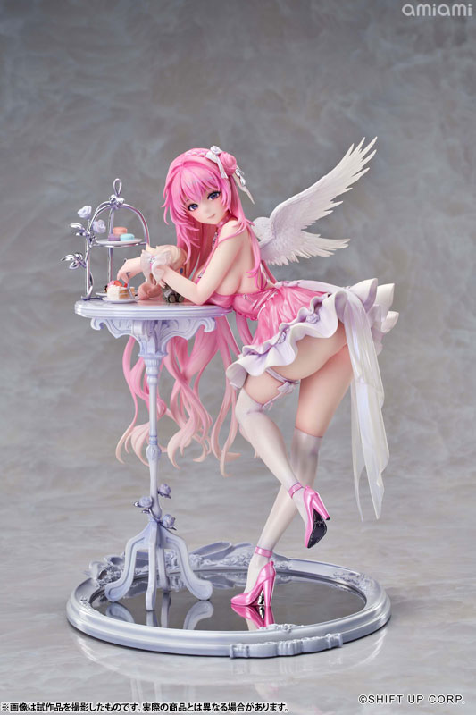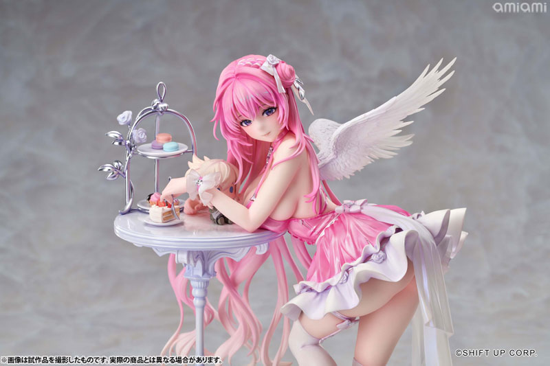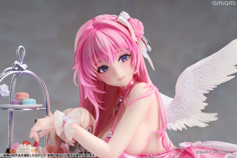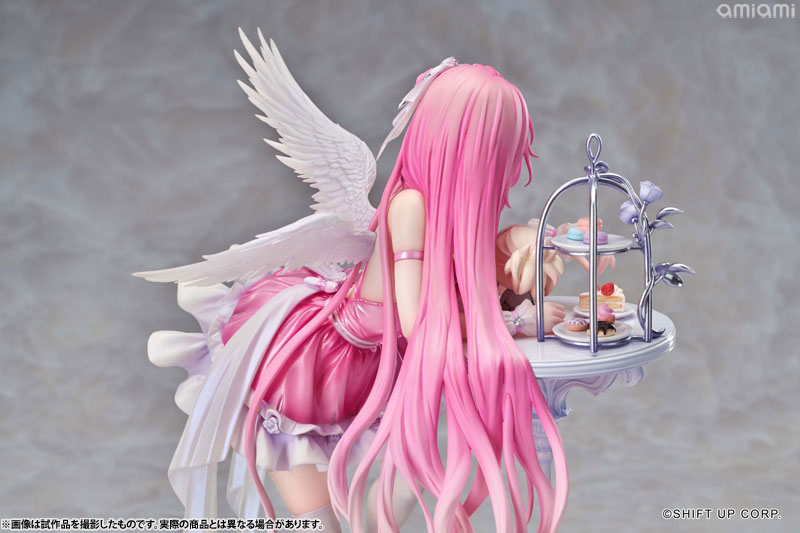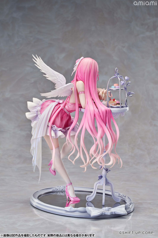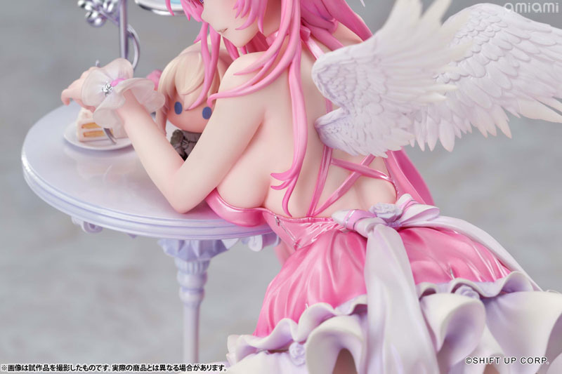 ドロシーが精巧なテーブルに寄りかかり、魅惑的な曲線美を見せつけながら、優しく微笑みを浮かべます。その瞳の奥には、さらに深い何かが秘められているようです。細やかな衣装のしわや色彩は、原画の質感を余すことなく再現して、丹念に造形された翼やアクセサリーが、可愛らしさと優雅さを兼ね備えた彼女の魅力を極限まで引き出します。テーブルの上のスイーツやピナのぬいぐるみも、丁寧に再現しました。